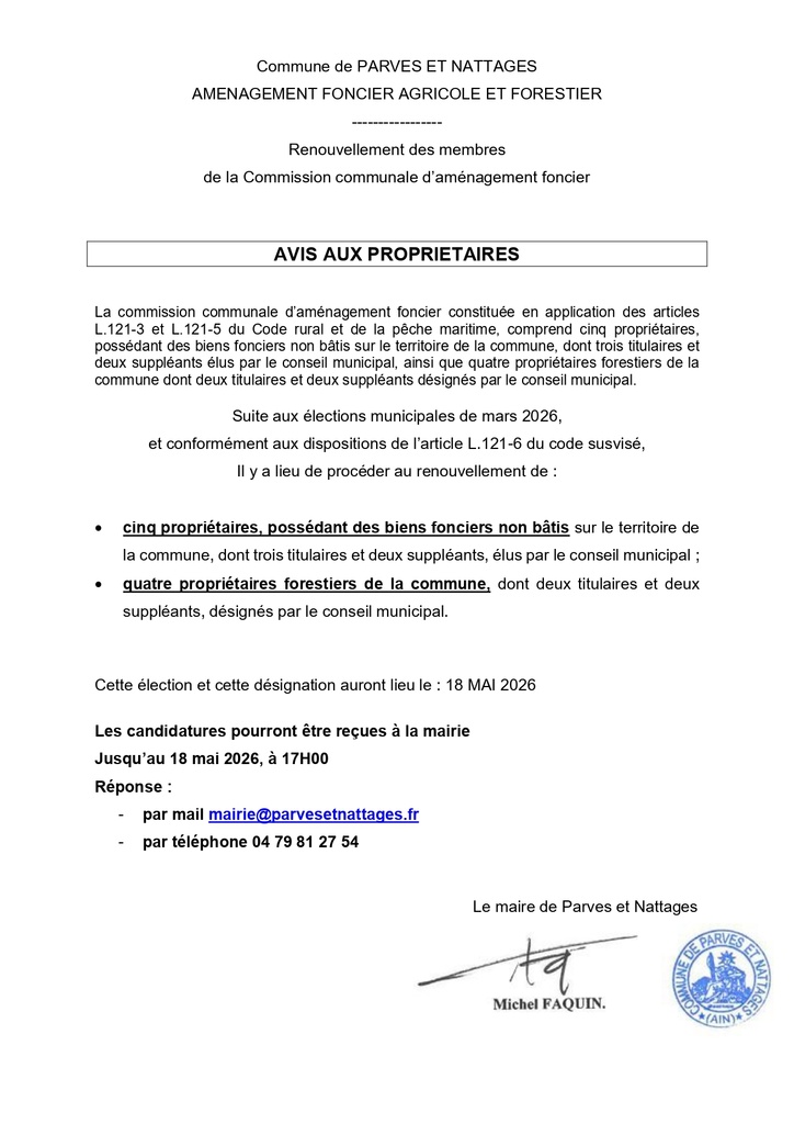 / AVIS AUX PROPRIETAIRES FONCIERS